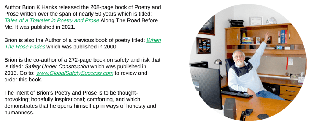 Poetry is among the unique forms in written and oral languages. Many individuals use poetry daily, with Brion K. Hanks, author of “Tales of a Traveler in Poetry and Prose Along The Road Before Me,” who writes heartfelt poetry for family and friends. Poetry as catharsis is vital to our lives.